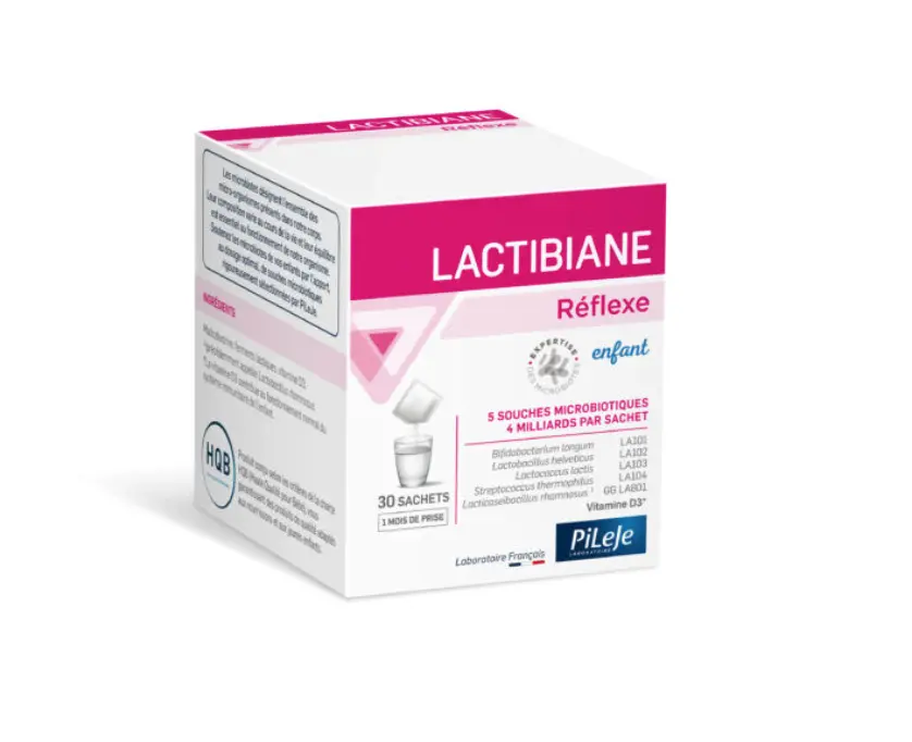 Lactibiane Réflexe Enfant je dodatak prehrani za djecu, za i obnovu crijevne mikrobiote, a koristi se i za potporu probavi, osobito nakon proljeva ili antibiotika. Odlična je i podrška za imunitet zahvaljujući vitaminu D.